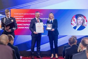 Повеља Криминалистичко-полицијског универзитета уручена министарки Татјани Мацури поводом Дана Универзитета